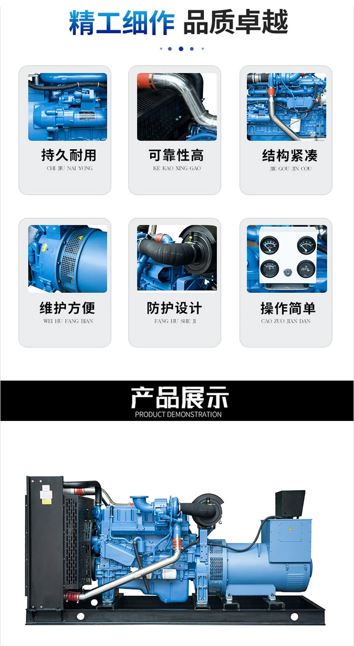 該發(fā)電機組具有功效高、響應快、操作簡單、使用方便等特點,可以為用戶提供可靠的電力保障。